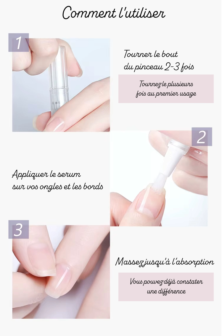 🖌️ Rien de plus simple : appliquez le sérum directement sur vos ongles et cuticules, 2 fois par jour – matin et soir.